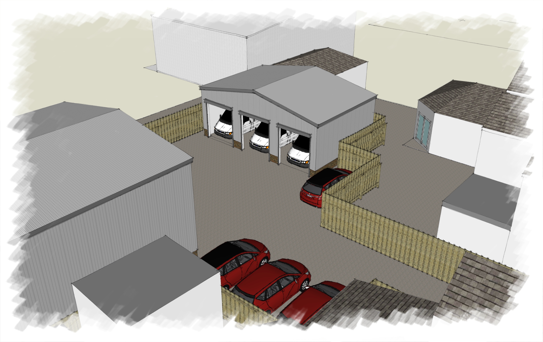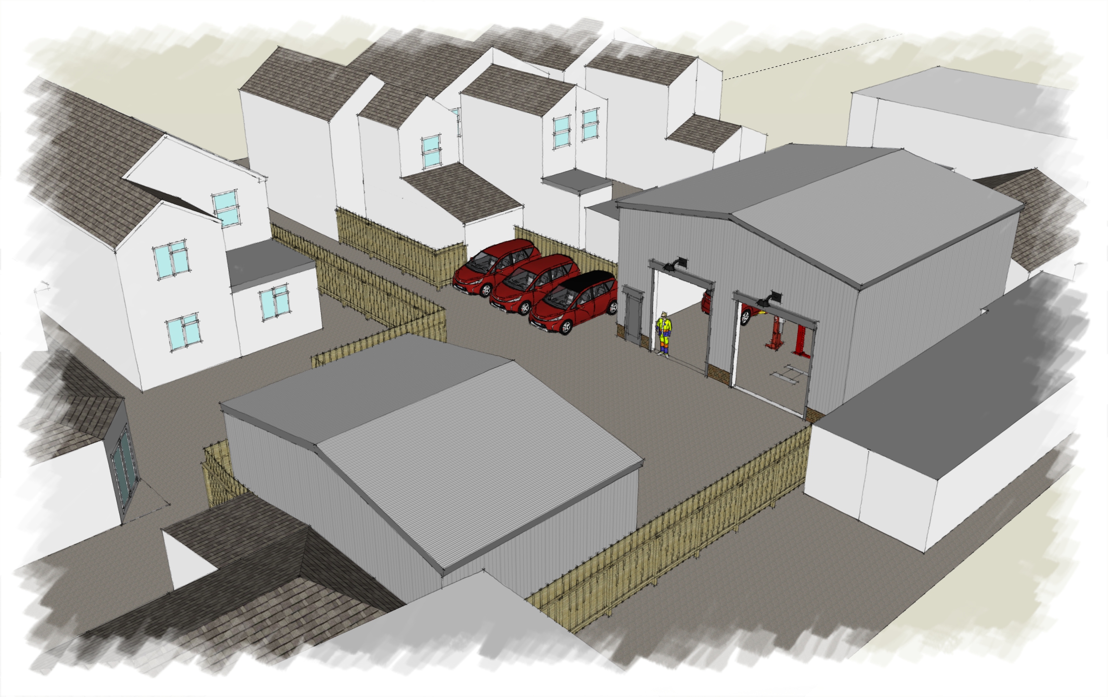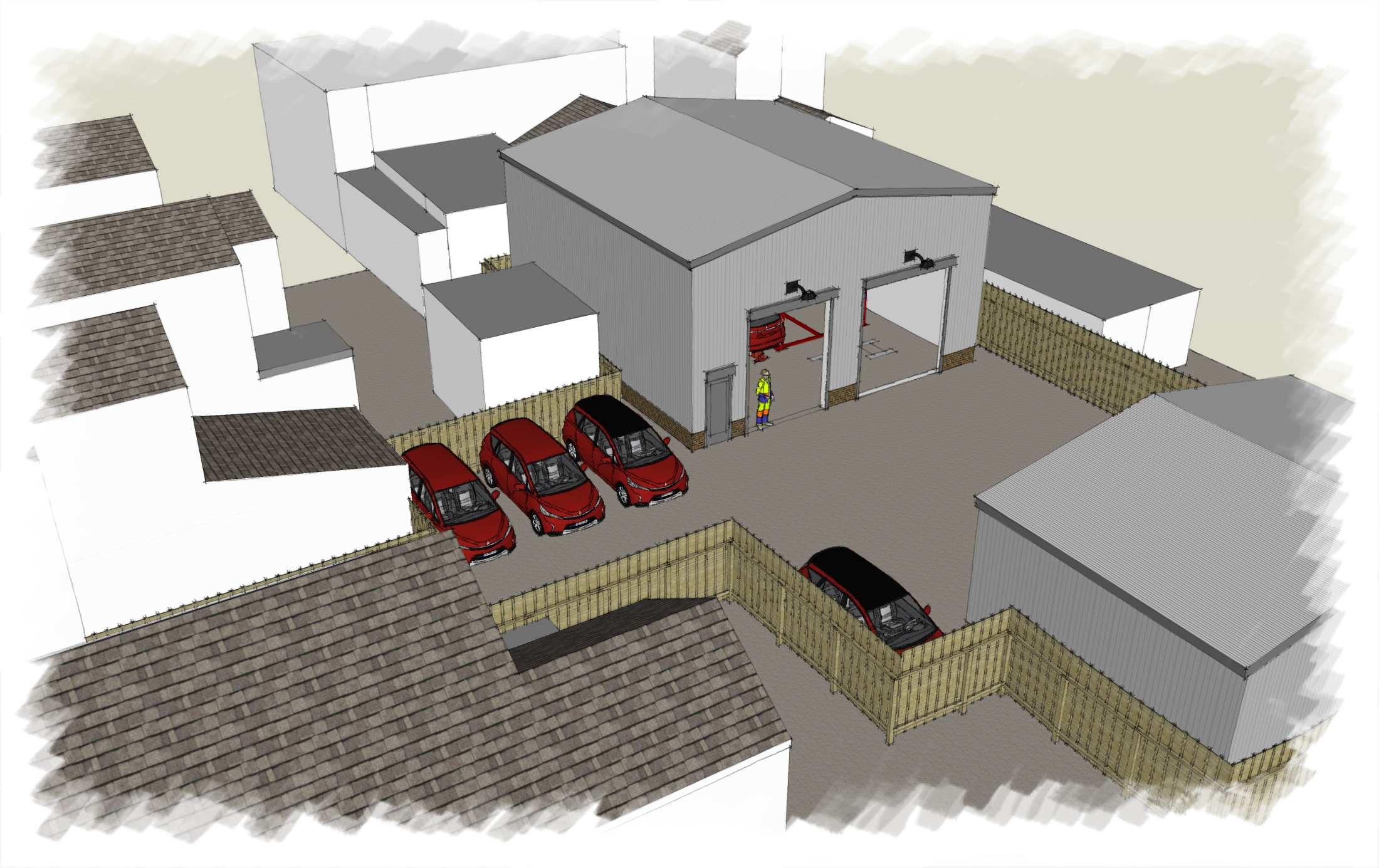 New workshops to accommodate vehicle repair and MOT (Class 7) Station.