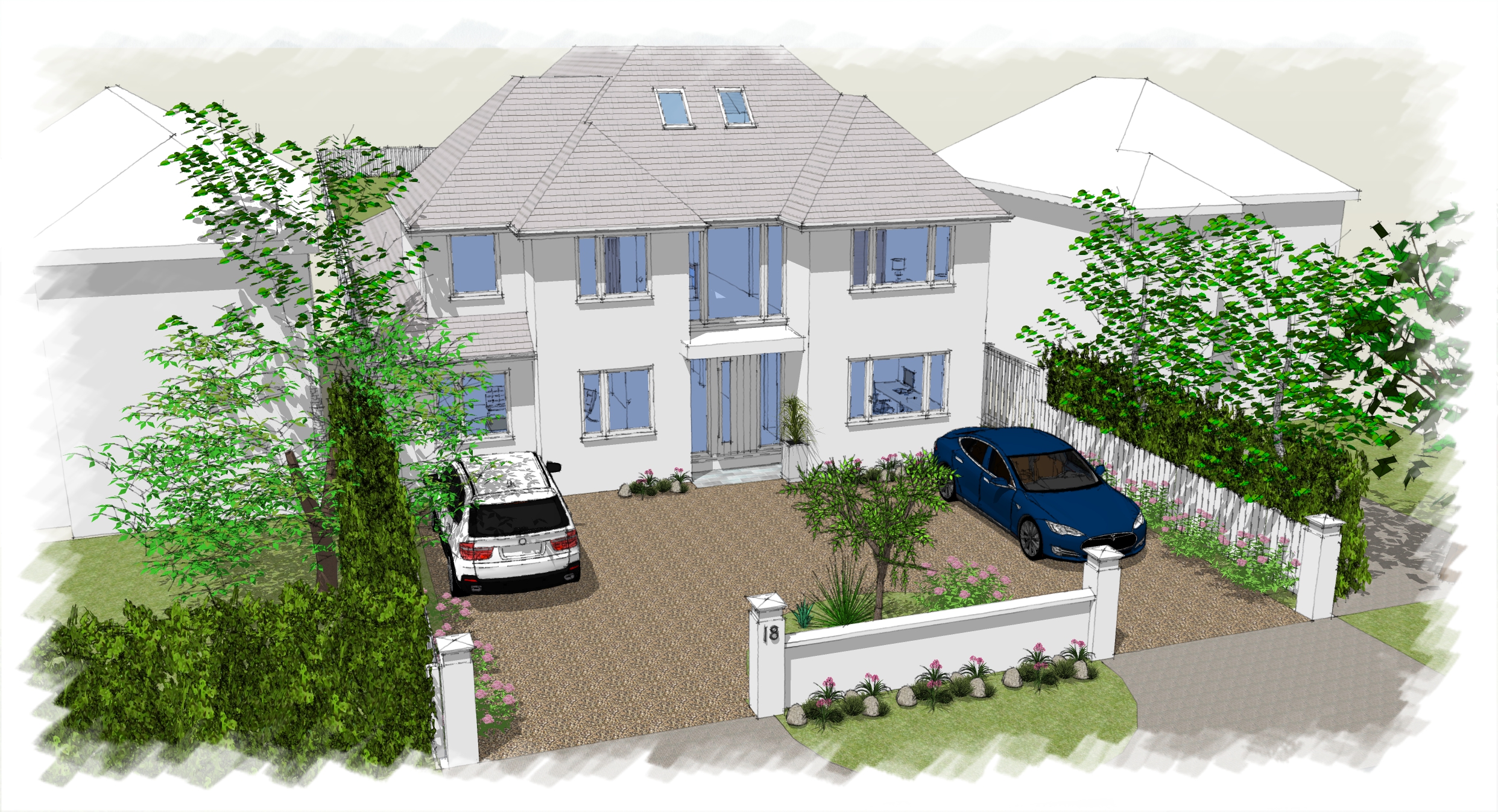 Our client wanted to significantly extend their home on all levels. Following scheme design, it was evident that it was better to demolish and rebuild the house. The house was designed to have a contemporary front facade yet respecting the character of the neighbouring buildings.